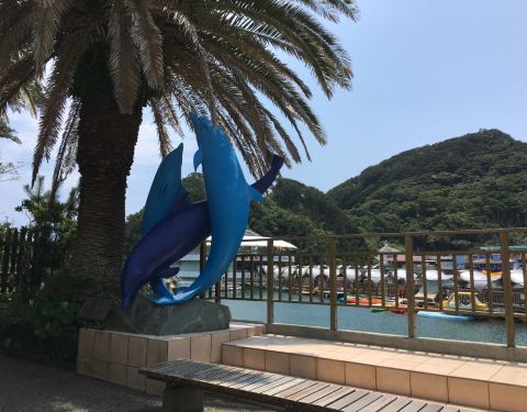 ...前的步道一路散步就到了海洋馆,大人2000yen,有跟海豚共游的项目,看上去不错,紧邻下田公园