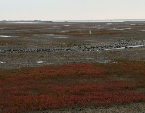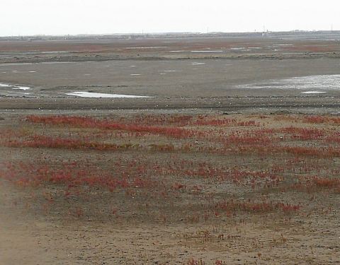 兴城的红海滩是最近两年兴城新建的旅游景点,由于红色的植被刚刚种植,所以还没有形成那种连成一片的红海滩