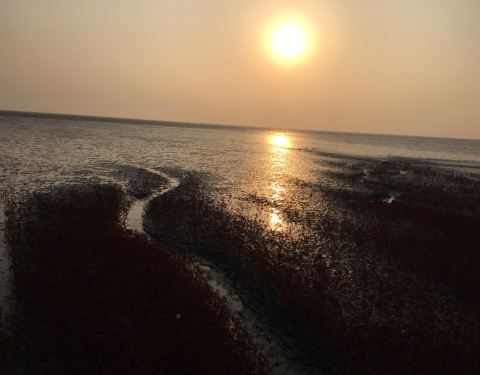 红海滩风景区位于盘锦,红色的碱蓬草,一直延伸到天幕尽头,俨然是一片红海,蔚为壮观!感叹大自然的神奇,还有生日在这样的滩涂上生殖,生命力真的好顽强!