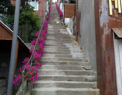 这个景点其实知道的人不多,但很有意思,它位于草梁洞的居民区内,其实这里就是平时居民们上下必走的台阶路,韩国的地势关系,有好多上下坡,有些很陡,这个景点就是,很陡,有168个台阶,现在有建电梯在阶梯旁边...