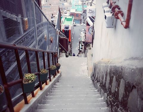 釜山一个很老的街区,这个地方也是比较文艺的,一些艺术创作者喜欢来这里参观的,台阶很多的