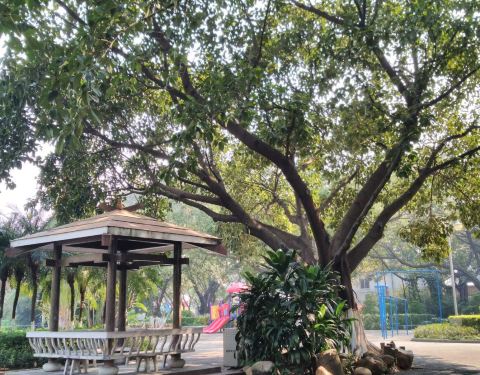 这首歌只唱给你听 你就像花朵般美丽 却从来都不畏惧风雨 在我黑色的眼睛里 永远都会有你的身影 荷城公园位于佛山市高明区荷城街道沿江路金穗大厦对面,属于临江而建的公园。 荷城公园内植物茂盛种类比较多,对于地处北纬23.5°以南的高明来说,荷城公园的冬天能让你感受到春夏秋冬四季的风景。 看公园大门对面,是不是有冬天来临了呢,再看看挺拔的棕榈树,是不是怀疑这不是在夏天吗。走进公园,靠近江边,或许有种秋风瑟瑟的感觉,靠近大树底下,新的生命正在发芽,是不是春天已经来了。 荷城公园里不只有四季景色,还有伴随公园的熙熙攘攘的人群,有老人,带小孩的家庭,情侣,也有第一次路过的过客。时间的流逝,不同的人,留下的只有公园的风景。从不索取,乐于奉献自己,这就是荷城公园。