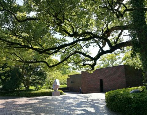游览熊本城,二之丸公园是必经之地,午后太阳正烈,找颗大树歇歇脚,却发现一旁有座特别的建筑和很多宣传广告,走进一看原来是美术馆,各种创意的现代雕塑别具特色,和公园对面的传统城堡相得益彰。里面非常安静,有一个英式风格的餐厅,内场有展览,需要购票进入,学生有优惠。