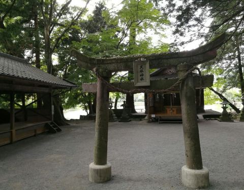 #2018.03 九州天空城之由布#金鳞湖旁的神社,最引人瞩目的就是位于湖上的鸟居了。遗世独立又让人无法忽视。 到手社按顺序先净手,然后到主社前祈祷。整个神社很小,往来的游客也不多。青苔覆盖了石像的表面,喧闹...