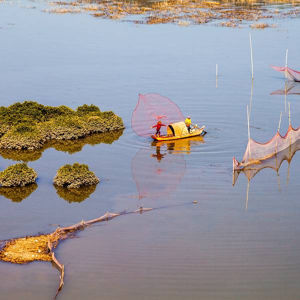 位于盐田乡鹅湾自然村,也因为连家船文化的快要消失,更使摄影者留恋这块神奇的土地。这里隐藏着一片红树林,不为人知,用唯美两字来形容这片红树林再恰当不过了。 红树林:红树林指生长在热带、亚热带低能海岸潮汐带上部,受周期性潮水浸淹,以红树植物为主体的常绿灌木或乔木组成的潮滩湿地木本生物群落。它生长于陆地与海洋交界带的滩涂浅滩,是陆地向海洋过度的特殊生态系。 主要创作内容:红树林、连家船、海蛎养殖劳作场景等。