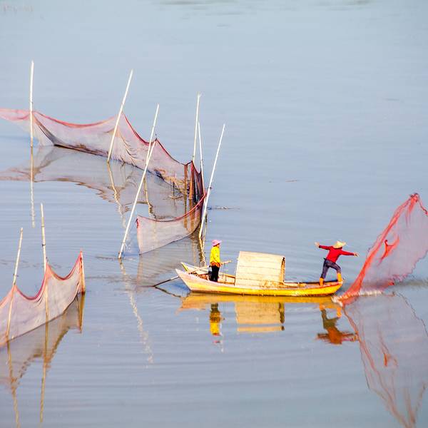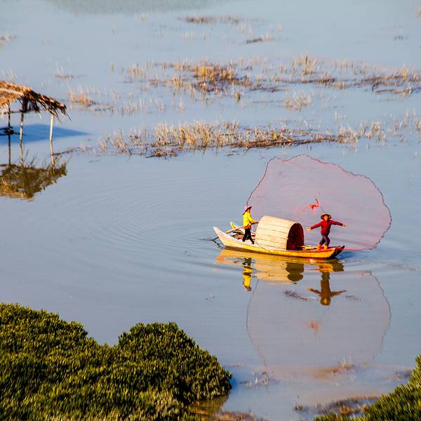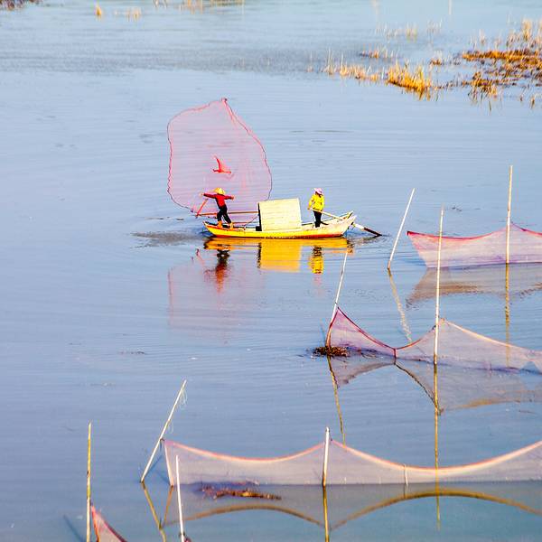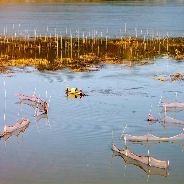 景色还不错,私人围起来收费。一个人30,好像还要单收摄影费。一看我们四个人犹豫,就说一人25,今天有摄影团,我们可以蹭拍,不单收摄影费了。水中有两个雇的摄影模特,来回划船,收费的女子用大喇叭给模特指示什么时候撒网,让摄影团开启连拍模式。总之很搞笑,感觉在作秀,这种摄影已经变味了。