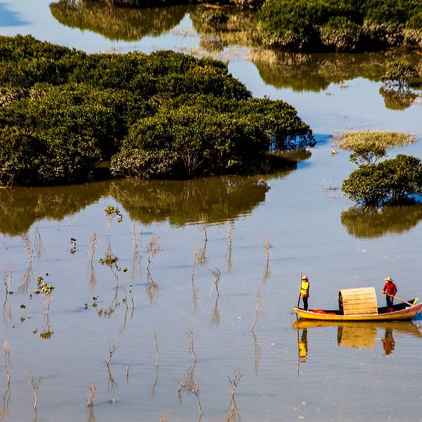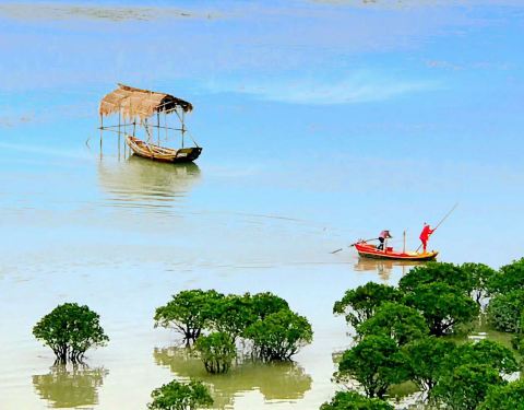 湿地红树林,远山近水,烟波浩渺,舟行其中,如梦似幻。当地专门建造了观景与摄影平台