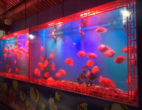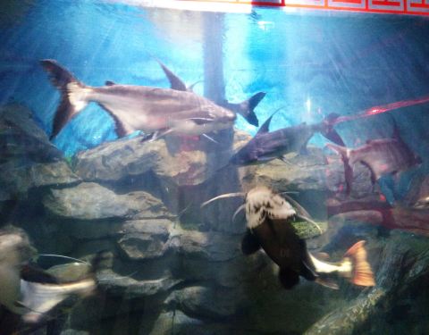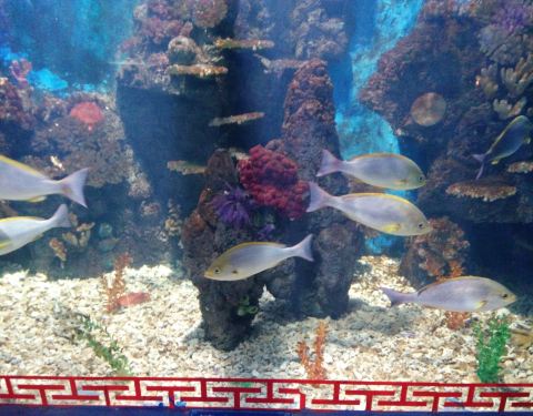 ...有什么珍贵稀奇的海洋生物,只是几个大鱼缸养了一些观赏鱼,较为吸引的是几条中华鲟,其他没什么特别