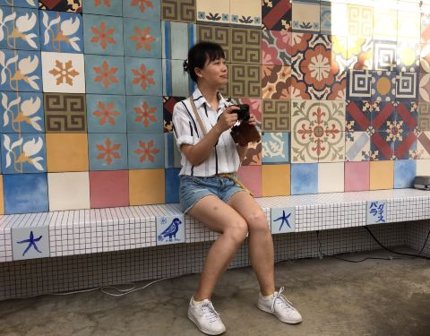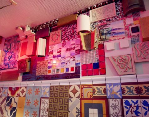 澡堂的外墙贴满了五颜六色的瓷砖,非常的好看