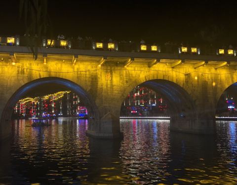 ...码头下,便是新大桥,开始游览古城,一直到古老的祝圣桥,新大桥车来车往,晚上的夜景这里也特别的美
