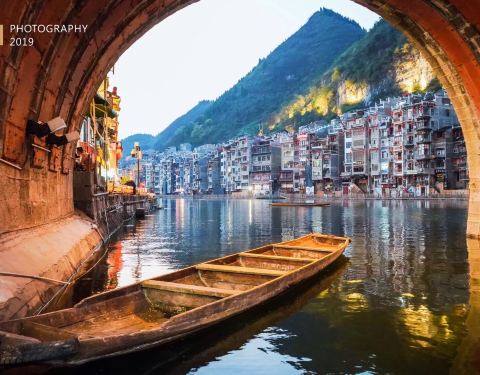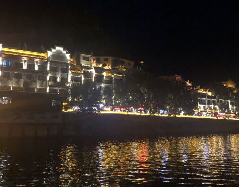 从镇远火车站出站,坐一路公交,到米码头下,便是新大桥,开始游览古城,一直到古老的祝圣桥,新大桥车来车往,晚上的夜景这里也特别的美