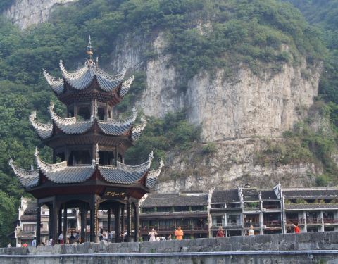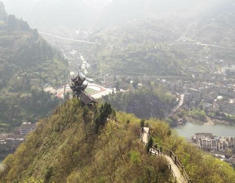 是舞阳河上的标志性景观之一,位于青龙洞景区旁,祝圣桥正中间,是一座重檐翘斗、三层十八角的楼阁,始建于明代早期,距今已有六百多年历史。