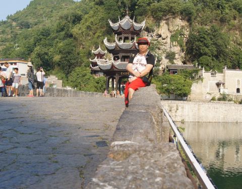 ...桥,下车站后走一会会就看到一座古桥跨舞阳河,祝圣桥哦,桥上一座高大的凉亭,魁星楼,坐坐看舞阳河