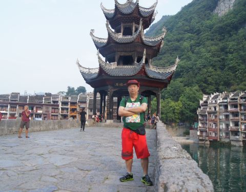 到镇远站后坐一路很快,直达祝圣桥,下车站后走一会会就看到一座古桥跨舞阳河,祝圣桥哦,桥上一座高大的凉亭,魁星楼,坐坐看舞阳河