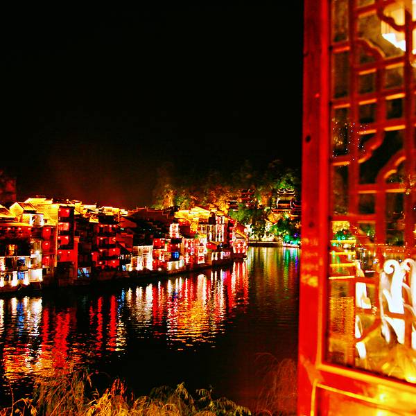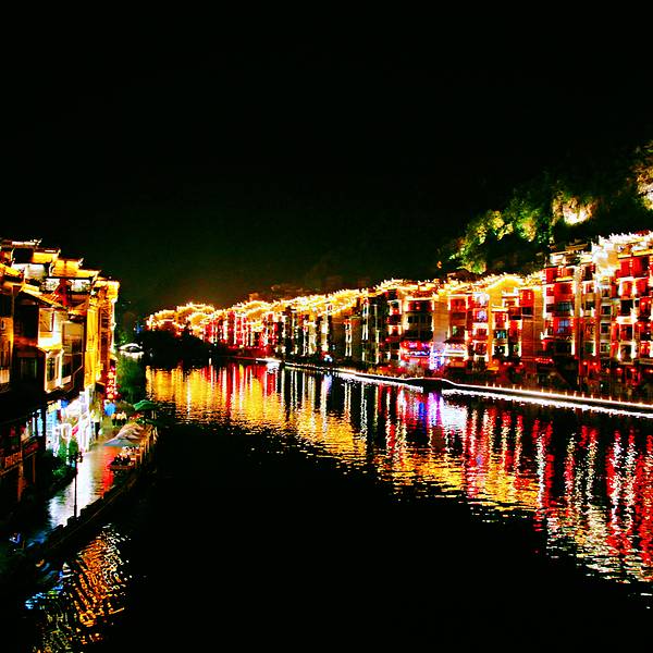 镇远夜景 酒店的房间在河的南岸,河边的夜景躺在床上也能看。许小姐要求他要像四方井一样方方正正的做人