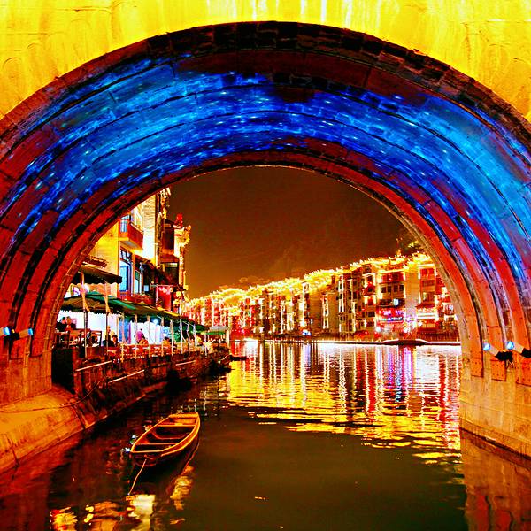 不知道是不是每天酸辣的食物彻底打开了胃口,一顿丰盛的晚餐之后,我还是义无反顾的踏上寻找甜品之路。雨停了,古镇上的青石板路像镜面一样反射着徽派建筑群,难得见到成熟的古镇里惬意和宁静的生活。晚餐后,街边的小店基本都关门了,祝圣桥在不断变换着颜色,不少摄影老法师都在桥上或者岸边咔嚓着快门,只有我,透过桥洞,仔细的辨识对面的招牌是不是甜品店。酒店的房间在河的南岸,河边的夜景躺在床上也能看。 展开