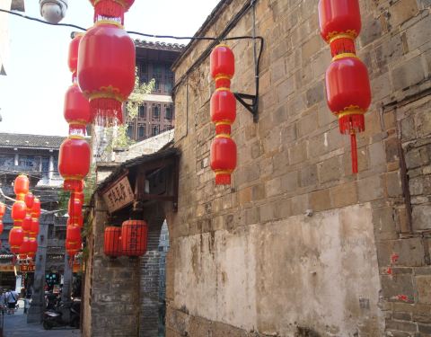 古镇内众多的老街巷之一,位于锦屏山下,始建于明代,因一口古老的四方水井而得名,斑驳的路面与砖墙诉说着曾经的历史,行走其间很有穿越感。