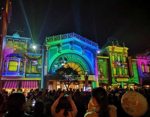 现在烟火好像停放了,但是灯展真的很漂亮!把整个迪士尼小镇点亮了!