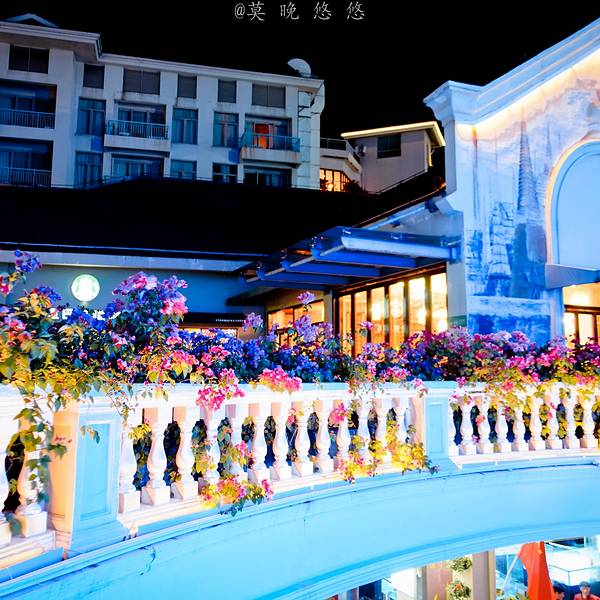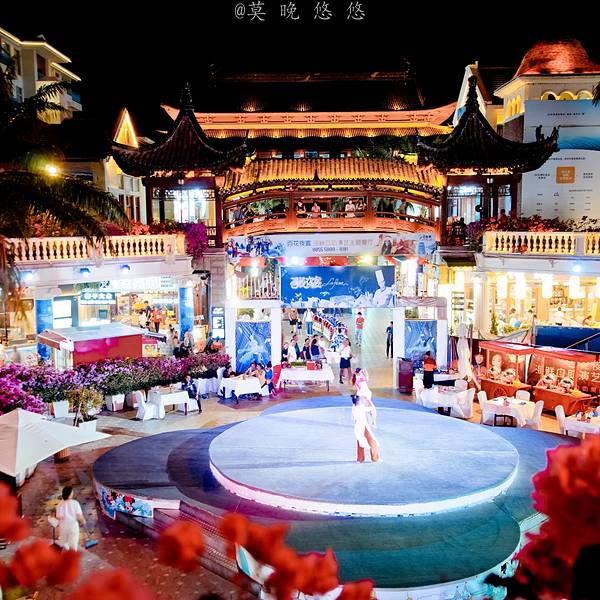 百花谷商业街位于亚龙湾核心地段,是三亚亚龙湾度假区唯一一个集餐饮、购物、休闲、娱乐于一身的热带风情商业街。到了晚上的时候,住在周边的人都会过来逛一下,或是购物,或是吃饭。这里融汇了天下各色美食,还有特色酒吧、KTV等,过来的游客既能享受阳光海滩的明媚,又能为度假生活增添激情与欢乐~这里的整体建筑风格都是比较欧式的,所以除了买买逛逛,也可以拍拍美照~商业街里面还有清晰的 路标指示~分成上下两层走到第二层的时候,还可以看到栏杆上种有好多鲜花,这就是三亚呀,处处都是鲜花环绕着~晚上的时候人流量还是很不错,站在二楼楼道上,吹着风,看着人来人往,也是一种惬意。还有一些店设计得很别致,像这一家,应该是吃缅甸菜的吧在外观上有着佛塔的元素~而在商业街的中心位置,还有表演可以看呢,热闹的音乐,欢快的舞步,漂亮的小姐姐~听主持人介绍,跳舞的小姐姐是来自尼泊尔~她们身上的服饰跟印度的有点像,只是外观整体看起来要比印度女性更为纤细轻盈,所以跳起舞来也是十分的灵动,富有节奏感~在亚龙湾的夜晚,没什么安排的情况下,都可以到这里小逛一下,买买买,再享受一下热闹的氛围~ 展开