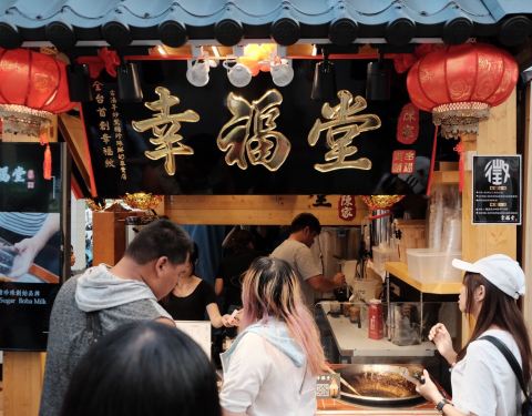 位于高雄市中心中央公园边上的一个商圈,人流攒动,有很多有名的小吃摊位