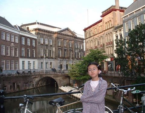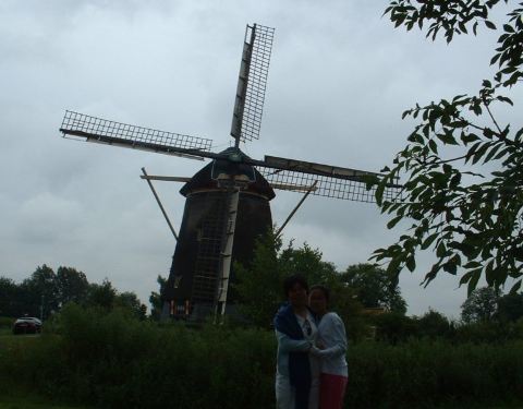 以风车文明于世界的阿姆斯特丹不一定有多少风车,估计在城外或者是农村才多,但是,风车确实成了荷兰整个国家的装饰品,不管是什么地方,大大小小的风车模型到处都是,点缀了美丽的荷兰。 在一座运河旁兴致勃勃的与风车合影,奶牛在一望无际的绿草地里恬静的咀嚼着鲜嫩的芳草,难怪这些国家的画家都能画出那样美丽的油画,对于他们这些画家来说,总是体验着生活,总是深入生活。