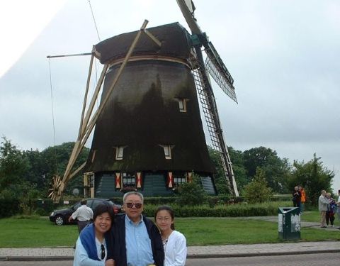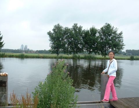 风车的故乡 以风车文明于世界的阿姆斯特丹不一定有多少风车,估计在城外或者是农村才多,但是,风车确实成了荷兰整个国家的装饰品,不管是什么地方,大大小小的风车模型到处都是,点缀了美丽的荷兰。 在一座运河旁,女儿兴致勃勃的与风车合影,奶牛在一望无际的绿草地里恬静的咀嚼着鲜嫩的芳草,难怪这些国家的画家都能画出那样美丽的油画,对于他们这些画家来说,总是体验着生活,总是深入生活。