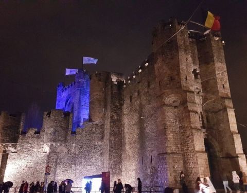 伯爵城堡位于根特的一个中心地位,地理位置非常的优越,而且我非常喜欢这个城堡,整个城堡的建筑和氛围,就是那种穿越到古时候的感觉。