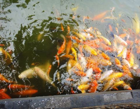 万方安和曾是圆明园40景之一,圆明新园里从这个景点开始进入江南园林建筑群。从远处就看见这座水上建筑,是一个半封闭的白桥,之所以是白色,因为曾经的万方安和为汉白玉建筑。 从卫星地图看是个卍字的形状,不过我从远错拍摄一直没有找到合适的角度,而走在白桥上感觉不出来走向,甚至会觉得就是一个宽大的九曲桥。白桥另一侧通道旁边是一个喂鱼点,湖水里面有无数大大的鲤鱼和其他品种的鱼,数量之大超乎想象。