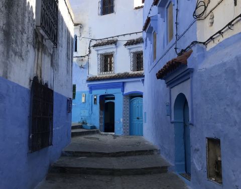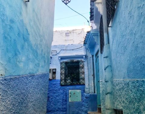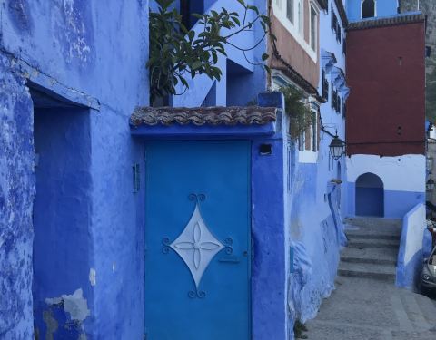 “蓝城”—舍夫沙万 早饭后太阳开始撒下光芒,避开昨晚夜游的路线,一路向几个著名的网红打卡点且拍且行。 在半山腰鸟瞰老城,还不觉得有多蓝。进入街巷中,顿时像进了一片各种蓝色的海洋。有好事者研究发现舍夫...