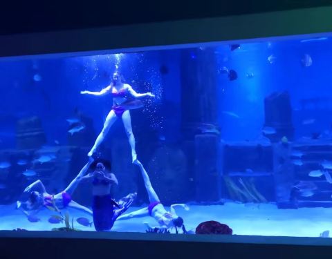 里面有美人鱼表演还有海狮表演,也有冰雕,特别是海底隧道,很长