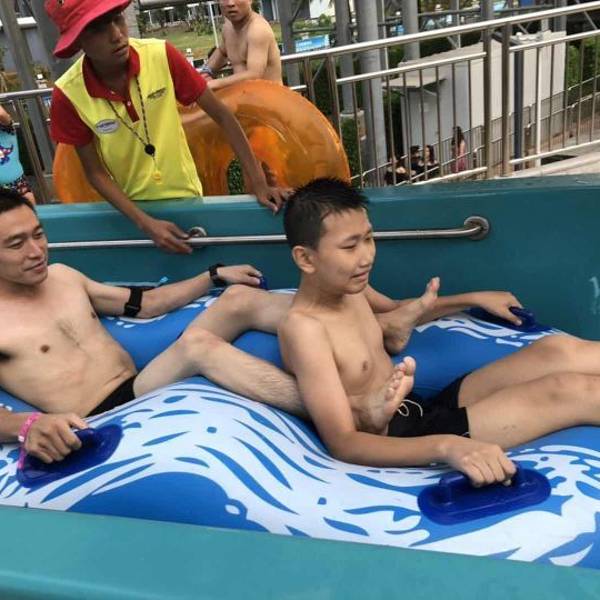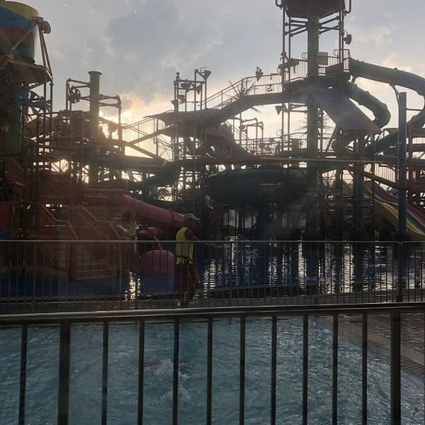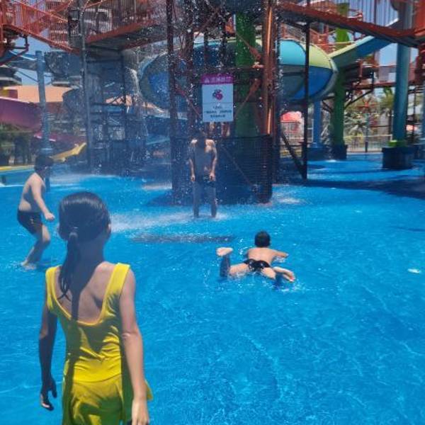 八月中周六下午来的,照理来说是人最多的时候,但是景区容量够大,柜子够多,洗手间淋浴间都足够,即使人多,并不觉得拥挤,还是有合理的空间好好的玩,一般不需要排太长队伍。 除了漂流河没运营外,其它项目都正常运营,听说不忙的时候会有很多设施关闭,那宁愿挑人多时来了。滑道有刺激有温和的,大人小孩都有得玩。 感觉还是有澳洲进口的运营品质,地面、水体感觉干净,每道滑梯(即使是小孩玩的小滑梯)都至少一名救生员看着,这标配太感人了。 淋浴间很大,方便大人带孩子一起冲洗,有热水,水压很够。小柜子有点偏小,租金30元。 可以改进的是造浪池的大荧幕一直播放广告,可以放点音乐舞蹈,氛围更好;再来美中不足的是淋浴间虽然看着干净,尿味挺重的,但这是游客行为了。