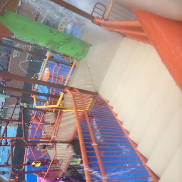 图二是绿色旁边那个比较刺激 图三是头向下抓着道具下滑 等等地方算是挺大的就是一整天都在爬楼梯排...