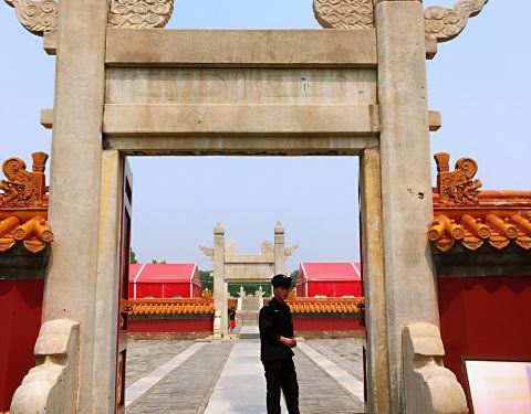 买了地坛门票后,这里另外收费5元。 天坛是圆的,地坛是方的。 天坛是蓝的,地坛是黄的。 北京保护得最好的祭坛是天坛,地坛是后来重修的。 不过看上去还是沧桑的。 周围会看到大吊车,不过在二环内整体还,整体感觉还是很开阔的。 祭坛是内外两层,上下也是两层,东南西北共四个门。