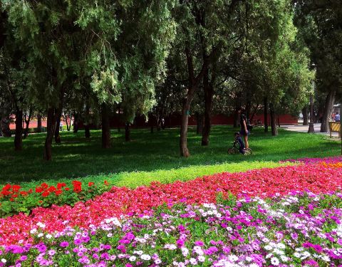 北京地坛公园,交通便利,地铁雍和宫下车,夏季绿色的草坪,绿树成荫。和唉春节的庙会景色截然不同