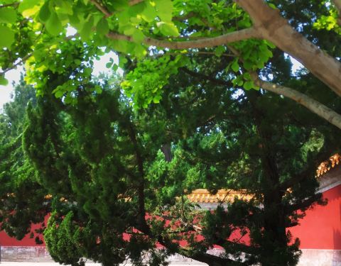 也没有什么特别新鲜和特色的东西,只是环境和空气很好,尤其是古树和红墙显示出历史的厚重感,园内绿树成荫