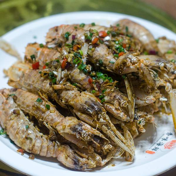 皮皮虾绝对是海鲜大餐中必备的一道菜了吧,搭配着椒盐的做法当属首选。油炸过后的皮皮虾火候独到,外壳非常酥脆,里层的虾肉鲜嫩紧实,再配上林姐家秘制的酱料,一口咬下去,逐一安抚着自己跳跃的味蕾,非常过瘾满足。