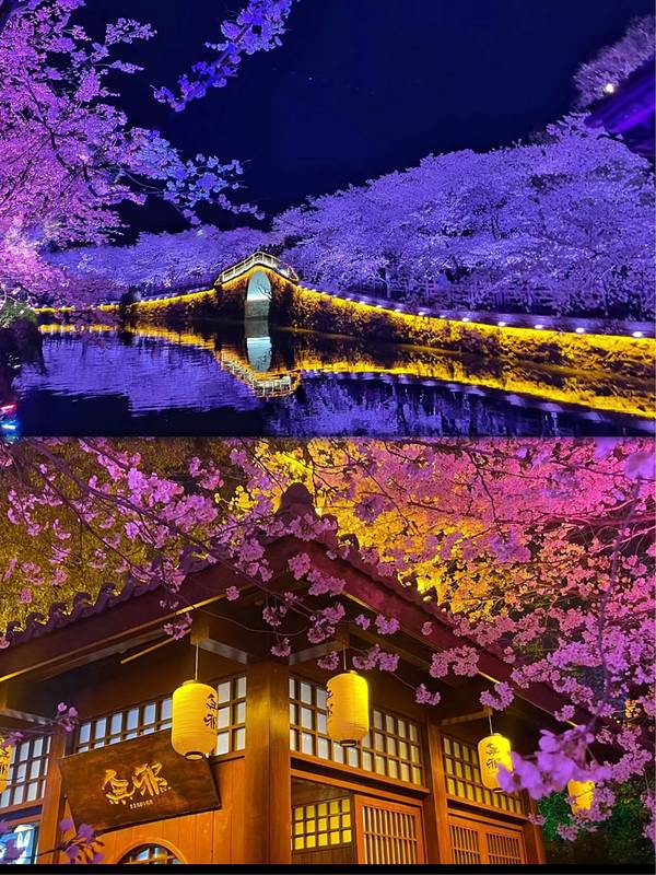 🌙夜樱限定(+30r):6点亮灯秒穿千与千寻!带补光灯拍汉服,发簪反光绝绝子!(避雷:周末人挤到怀疑人生,建议周一去!)