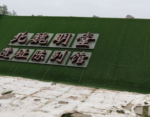 北魏明堂遗址公园位于大同古城外东南部,公园面积不大,有北朝艺术博物馆,圆形建筑有些像祈年殿,存放着大量文物,石雕等。画面栩栩如生。博物馆后面还有一个北魏明堂遗址陈列室,有辟雍遗址碎片,玻璃覆盖,续穿脚套,参观。公园内有一颗古老的大树,绿茵覆盖,公园四周,有护城河。游览下来半小时足够。公园免费,陈列馆免费,然鹅,都必须刷身份证。
