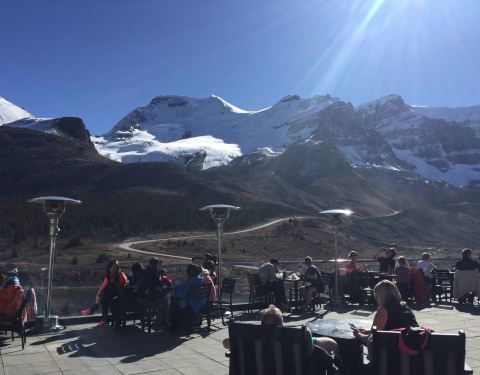 冰原大道两大项目,哥伦比亚冰原雪车以及玻璃的天空步道skywalk。 凭良心说,我个人觉得只参加雪车就够了,这个玻璃步道只是看上去很美而已,实际体量很小很小,几步就走完了,而且因为人很多,拍出来的照片也不太有feel。 但倒是有中文随身导游机提供,适合小朋友科普。