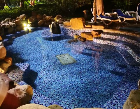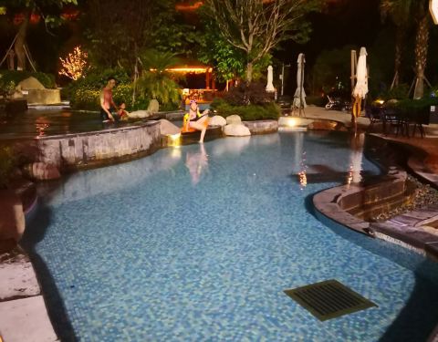 #2019,大凉山深度游# 宁南 宁南比较出名的地方就是这个温泉度假村,西昌出发到宁南,出最后一个隧道,就是这家度假村,交通便利。 晚饭后到度假村已经九点半了,十点就不让进池子了,于是赶快收拾好,还好房间离温泉很近,走几步就到了。 小池子很多,温度不一样,有的很烫,有的偏凉,选了个温度合适的池子泡,同行的小朋友觉得太烫离开了,看样子年龄大了要喜欢温暖点的池子。 很多当地人也会来泡温泉,这里的温泉是每天换水,这个就很赞,因为快结束的时候离开发现很多池子都空了,把水排走了。 房间不大,但是细节都考虑了。总体来说很满意了。早上离开的早,没有吃到早餐自助。