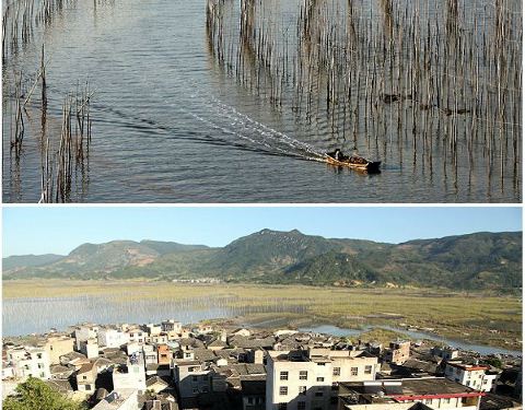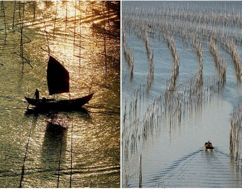 烟雨沙江,水墨天成。阳光下的沙江金碧辉煌,烟雨中的沙江水墨含香。密密麻麻插满了用来晾晒紫菜的竹竿,留给船行的水道,形成优美的S形线条,构成梦幻般的画面。学校的六楼是最佳观景处,但要每人收二十元的进场...