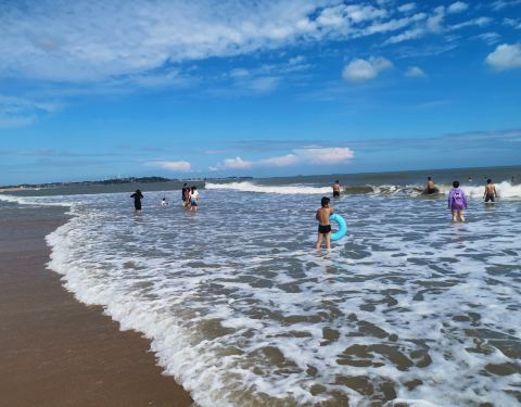 莆田平海沙滩,是一处没有开发的海滩,没有更衣室和淋浴间,不过沿着海边的小街上,有很多小门店内可以淋浴更衣,5元/人。这里的海水不是很清澈,可以明显看出近处的海水比远处的海水黄一些,沙滩还算干净。是莆田周边市民夏季消暑、游泳、嬉水的可选之处。