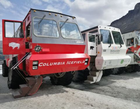 据说是贾斯伯国家公园里独一无二的体验,来这里一定不要错过,大雪车的轮子比一个成年人的高,才有力...