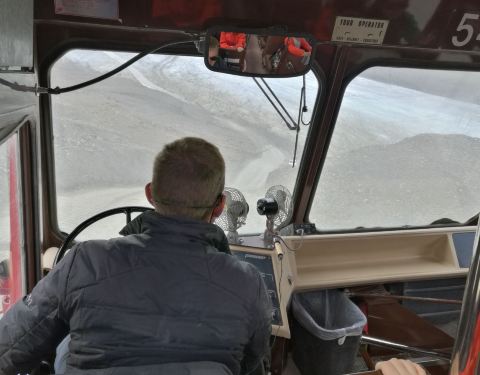 而亲身体验冰河之旅的交通工具就是有着巨大轮胎的冰原雪车,它行驶在万年冰河上,除了可靠的抓地力还...