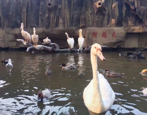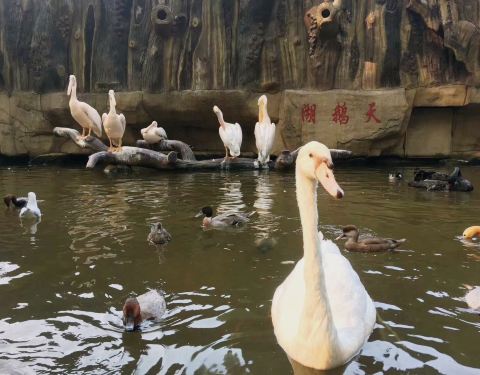 东湖飞鸟世纪海洋世界和大马戏是一个大的景区。就是你一个人的左边1千米不到。 这个飞鸟世界不光有鸟,还有土动物。可以买点食物喂,这些动物挺好玩的,互动性非常强。