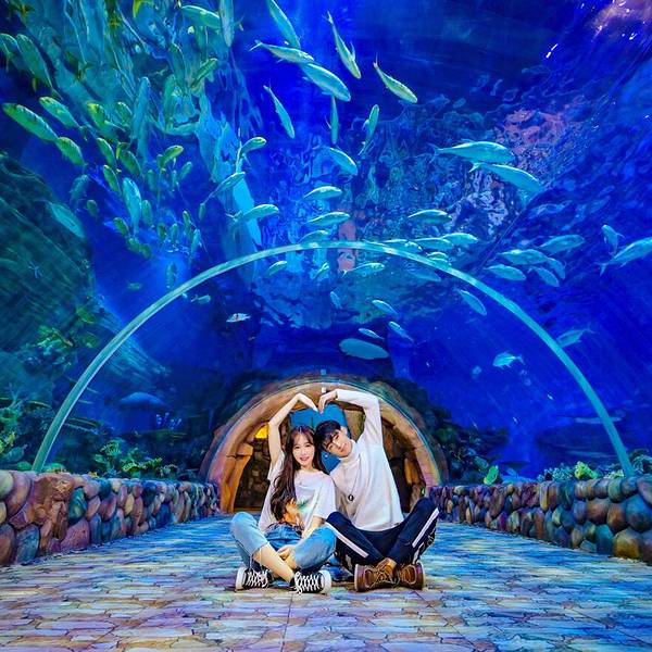 ·超大的海底隧道情侣打卡必备😂可惜我俩只能单身狗同游。这个海底隧道就是一个小型的海底世界,可以看到海豚、企鹅、海象、海豹等近乎千万只海洋动物。