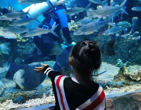 景色还不错,还有海豚表演,挺喜欢的,不要带吃的,进门储物柜10块钱 里面有溜娃神器十块钱一个小...景色还不错,还有海豚表演,挺喜欢的,不要带吃的,,进门储物柜10块钱 里面有溜娃神器十块钱一个小时 ,可以先去海洋馆,然后去隔壁场馆看海豚表演,然后在去看五D电影 1.1米以下不可以观看,去的时候,早一点 ...景色还不错,还有海豚表演,挺喜欢的,不要带吃的,,进门储物柜10块钱 里面有溜娃神器十块钱一个小时 ,可以先去海洋馆,然后去隔壁场馆看海豚表演,然后在去看五D电影 1.1米以下不可以观看,去的时候,早一点 人太多了。海洋餐厅的饭贵的可以,饺子11个32块钱,其他的都挺贵的就没有下30块钱的。还有就是外省的如果是单独去,是进不去的,如果是跟团,一定要提前让导游把证明给你,不然耽误很长时间,还有就是进门检票时给检票员说二次入场,检票员会盖章子,出去以后是可以在次入园,玩游乐设施的,有些免费,但是也是有身高限制的,最低1.1 展开