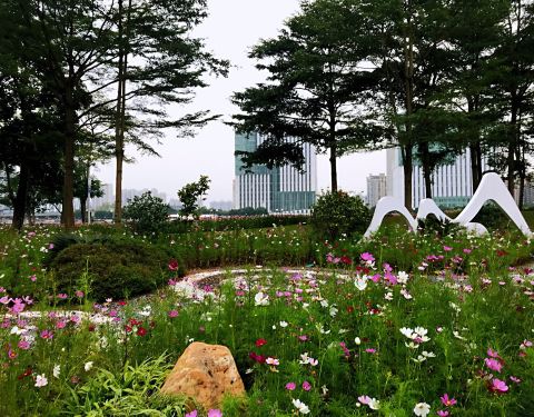 二沙岛艺术公园,在二沙岛的东端,广州大桥的桥底,与宏城公园、越秀南粤先贤公园相连接,非常好找。 这个公园到处都是花海,是打卡拍照的好地方,有不少人在这里拍照。当你以蓝天白云、广州塔小蛮腰、海心沙亚运公园以及珠江新城的众多地标建筑为背景,拍出的照片绝对是非常之美。