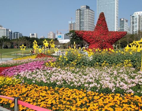 春节期间去,那时有个园博会,二沙艺术公园就是分会场,园博会就是各个单位设计的景点,比较有特色就是粤剧造型园林,来这里的人不多,展览会规模又不及大夫山大型,毕竟这里空间有限,而且不搞晚上,整个公园厕所不多,但可以去酒家的那个厕所。走完艺术公园可以去隔壁的海心沙,因为那里也有花看。总体来讲不要夏天去,因为无啥树,烤焦啊。