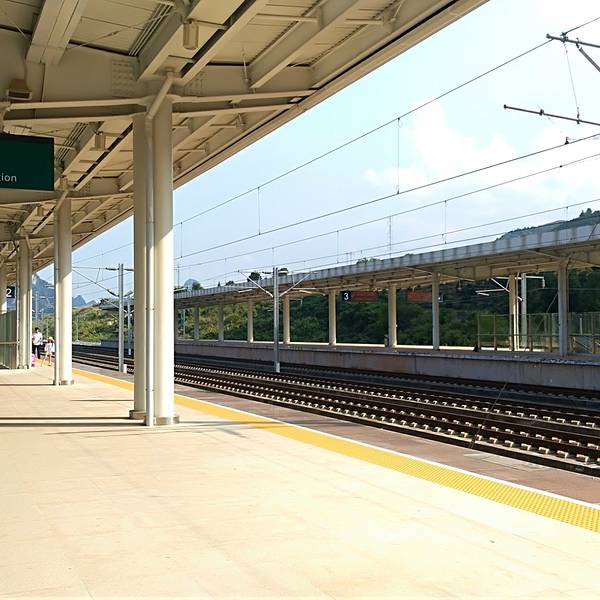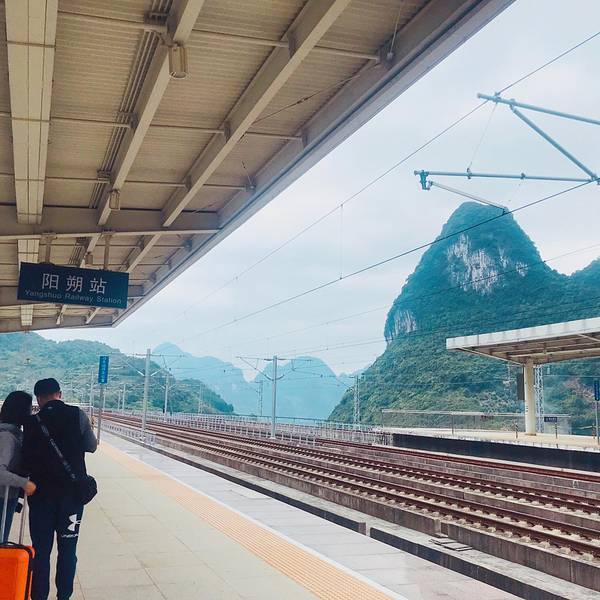 阳朔站不是很大,其实离着市区还是有点远的,但是阳朔实在是旅游热门地点,所以阳朔站的车次还是蛮多的,火车站建设的挺有特色的,好像是只有一个检票口,车站人很多,但是都有条不紊的,阳朔很美,推荐大家来看...